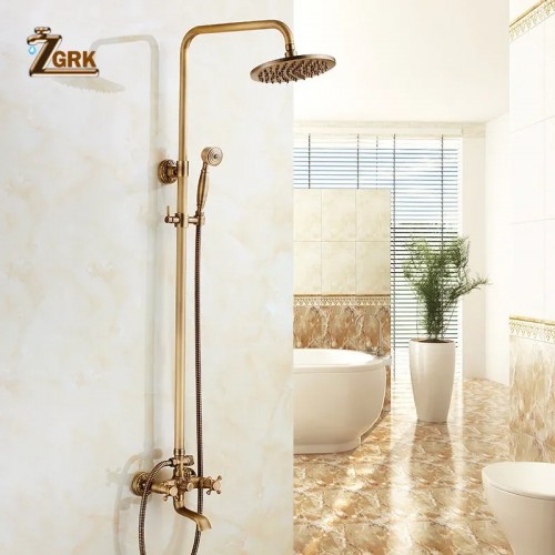ZGRK الكلاسيكية المطر دش مجموعة العتيقة برونزية حمام دش صنبور مجموعة النحاس الحائط قطب صنبور صنبور حوض خلاط أدوات دش